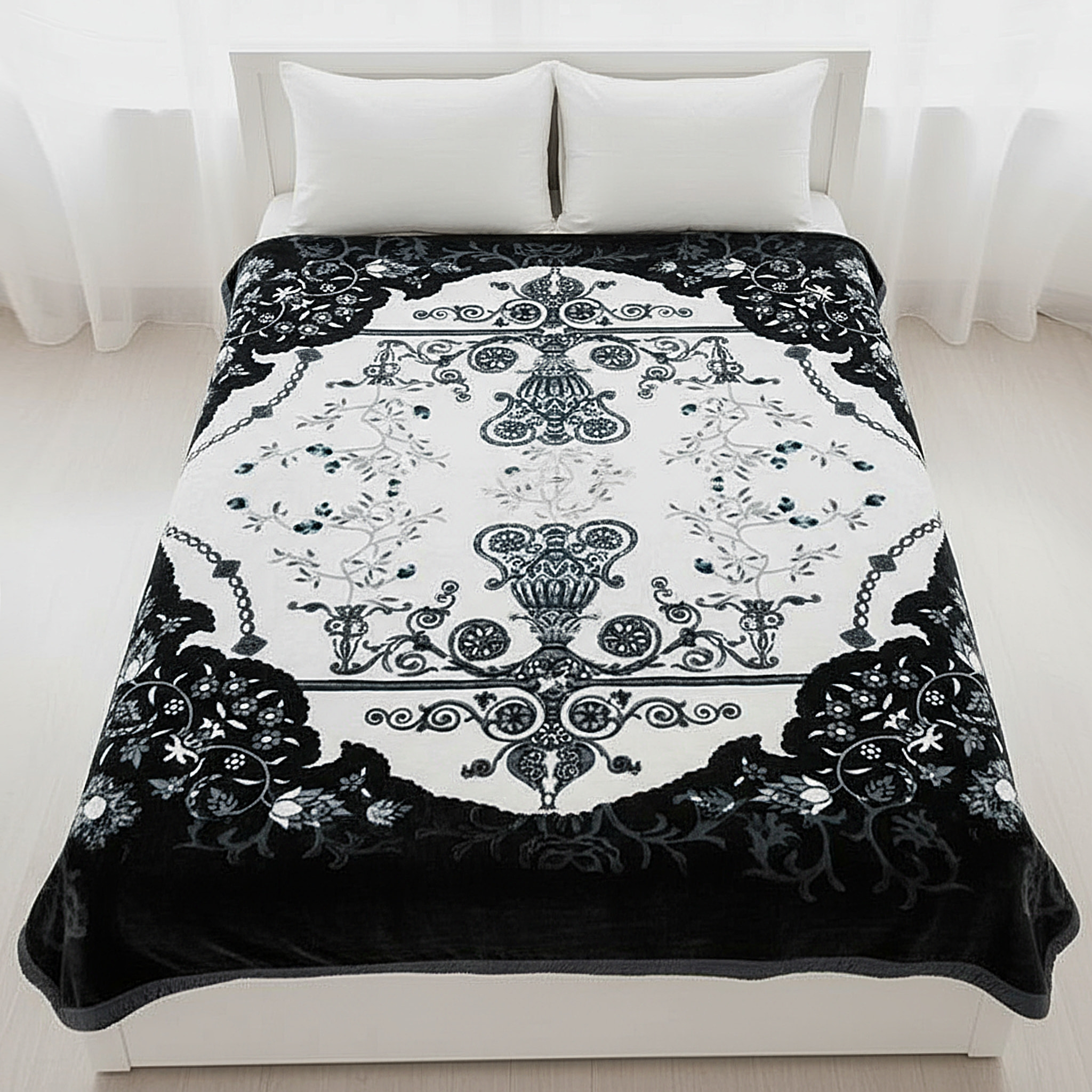 Monarch Scroll | Embossed Double Layerd Mink Blanket | 5kg | Double Bed